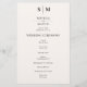 Make your wedding day unforgettable with this elegant wedding program card. At the top, showcase the couple's monogram, adding a personal and refined touch. Below, the ceremony itinerary is laid out in a beautifully crafted serif font, guiding your guests through each special moment. On the back, honour your wedding party members and include a heartfelt thank you message to show your appreciation. Ideal for elegant weddings, this program card adds a luxurious feel to your celebration.