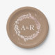 A simple chic floral faux foil monogram beige paper plates. Easy to personalise with your details. Geometric photo paper plates, modern boho paper plates editable, customisable, calligraphy handwritten font, simple, elegant.