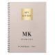 Beige background colour. Black text. Personalise and add your logo, monogram initials, name and a title.