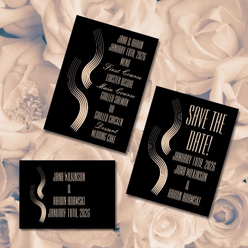 Beige-on-Black Streamline Moderne Wedding Thank You Card