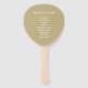 Sandy beige colour palm tree beach wedding ceremony program order Hand Fan . Add your own personalised wedding ceremony itinerary timeline schedule. Classy script typography template for couple getting married and guests. Personalise with name and order. Great for summer or destination wedding in exotic climate. Elegant palm tree silhouette design.