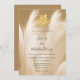 This elegant modern Chinese wedding invitation features an AI created photo of blush beige pampas grass, an artistic golden double happiness symbol and an elegant handwritten modern script.