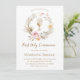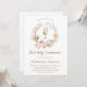 beige pink flowers wreath First Communion Invitation