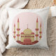 Celebrate the spirit of Ramadan with this refined pillow design featuring a stylized mosque in warm beige and reddish-brown tones, crowned with a crescent moon. Set against a soft pink circular backdrop, the clean lines and modern aesthetic evoke both reverence and serenity—perfect for prayer spaces, festive décor, or heartfelt Ramadan gifts.