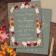 Burgundy floral on beige on sage green fall colours foliage wedding invitation for a romantic wedding invitation.