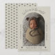 Welcome your little one to the world with modern boho charm! This Beige Simple Arch Frame Photo Birth Announcement features your newborn's photo framed in a soft boho arch, with a playful polka dot background on the back. Elegant script lettering and clean modern design come together to create a sweet and stylish way to share your baby’s arrival. Perfect for introducing your new bundle of joy to friends and family, this announcement blends personality and warmth with a trendy, heartfelt touch.
