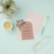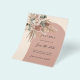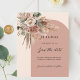 A modern, stylish and romantic Save the Date card for a wedding. Cream, peach coloured background, an antique rose coloured arch frame, it’s beautifully adorned with muted, earthy roses, eucalyptus greenery, and pampas grass for a natural and romantic feel. Personalise and add the date, your names.