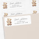 Make your gender Neutral baby shower invitations extra adorable with PixeliaCreations' Cute Teddy Bear with Beige Ribbon Return Address Labels. Featuring a charming watercolor teddy bear donning a sweet beige ribbon, these labels add a delightful touch to your envelopes. Measuring 2.25 x 0.75 inches in a rectangular shape, they fit perfectly on any invitation or envelope. Spread the joy of your upcoming arrival with our "We Can Bearly Wait" themed return address labels.