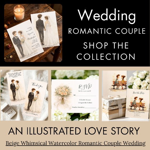Beige Whimsical Watercolor Romantic Couple design featuring a soft, elegant illustration of a loving couple. Ideal for couples planning a timeless and artistic wedding, this design adds a warm, romantic watercolor touch to your celebration.