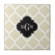 Beige, White Moroccan #5 Black 3 Initial Monogram Tile
