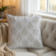 Elevate your home decor with our Glam Beige & White Quatrefoil throw pillow featuring a sparkling pattern that adds a touch of sophistication to your space.