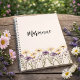 Beige wildflowers yellow custom name script notebook