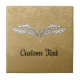 Wide open beige wings illustration. Grunge beige background. Custom text.