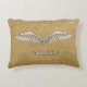 Wide open beige wings illustration. Grunge beige background. Custom text on both sides.