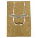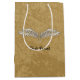 Wide open beige wings illustration. Grunge beige background. Custom text on both sides.