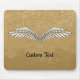 Wide open beige wings illustration. Grunge beige background. Custom text.