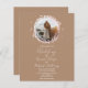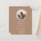 A simple chic floral faux foil wreath beige wedding invitation. Easy to personalise with your details. Geometric photo wedding invitation, modern boho wedding invitation editable, customisable, calligraphy handwritten font, simple, elegant.