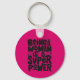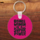 Round button keychain features fun text on hot pink background. Keychains make memorable gifts for family and friends or create for yourself.