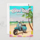 Beirut Lebanon - Middle eastern beach, palm trees and beautiful retro scooter vacation print.