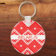 Funky Belarus / Беларусь National Folk Cross Stitched Stylized Pattern Print Keychain to add to your collection. A cool gift / present for all who love unique custom design personalized items, positive vibes, holidays, traveling, Europe, remote destinations, happy colors, is of a Belarusian Descent etc. Explore, travel, country, destination, discover. Red, white.