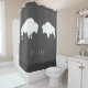 Funky And Stylish Belarusian / European Bison Minimalistic Shower Curtain to add to your travel memorabilia / home / office / business décor collection. A cool gift / present idea for all who love custom design items, positive vibes, travelling, remote destinations, is of a Belarusian Descent etc. Bisons, national symbol, wild animals, Belarus. Grey and white.
