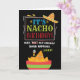 Give someone a chuckle while wishing them a belated happy birthday with this unique card, featuring the message, "It's NACHO birthday! Yeah that day already kinda happened. (sorry!)". The design features festive, colourful typography with nachos and hat illustration on black background. Inside can be customised with your message, but has this text: So sorry I missed it. Hope it was a great celebration all the same. Happy belated birthday!