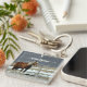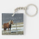 Belgian Draught Horse In Paddock, Keychain. Digital Art. Single Belgian horse in winter paddock behind barbed wire fence. Fits well in farm or ranch decor. Customisable. Edit the name to your needs, or remove it entirely.