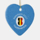 An angel dressed in the flag of Belgium on a heart shaped ceramic ornament for Hanukkah. This Hanukkah decor is designed, especially, for families of multiple religions. The Belgian flag angel flies in the center of a circle of white squiggly squares surrounded by a background of blue squiggly squares. Personalize with a name. Customize with the year. You can, also, change the text to whatever you wish.
