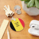 Belgian flag round button keychain for Belgium. Country flag key chain design with personalised text.