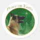 Peace on Earth. Show your reason for the season with your Belgian Malinois in this unique dog design accented with green and gold. Goes great on an ornament, greeting card or sticker.