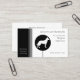 Modern geometric shapes highlight a silhouette of a Belgian Malinois on this business card in black and white. Room for your business or kennel name and tagline, along with a customised QR code on the back make this card perfect to use at dog shows and more.