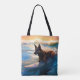 Belgian Shepherd Beach Surfing Painting Tote Bag