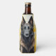 A beautiful dog lover watercolor illustration of a Belgian Tervuren dog looking great against a field of yellow poppies that looks great on this beer cozy and a super gift idea for Father's Day, Mother's Day and birthdays.
