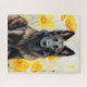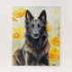 Beautiful dog lover watercolor illustration of a Belgian Tervuren dog looking great against a field of yellow poppies makes a wonderful puzzle for the puzzle in your life.