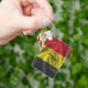 Keychain with the flag of Belgium in wavy fabric style design. This design features the Belgian flag colours and design with a beautiful waving material textured effect. This flag design is a great way to show you are proud to be from Belgium.