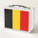 This is a standard metal lunchbox that appears to work just fine. We designed this box ourselves with an uploaded photo and custom text on the front and back. It looks absolutely beautiful except the front of the lunchbox is not centered like it shows in the photo. The print borders don't align with the inset flat part of the box where the preview photo online showed it perfectly centered in there. The back looks nice and centered though.