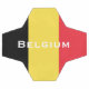 Soccer ball with one side of the ball done in the black yellow and red colours of the Belgium flag. White bold text reads Belgium and can be personalised to read what you want.
