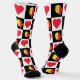 Fun patriotic socks for proud Belgian people and anybody who loves the nation of Belgium. Featuring a unique black and white chequered pattern with red hearts on the white squares, and the black squares filled in with a map of Belgium filled in with the Belgian national flag. These are a great way to show your pride for your favourite country, and make a fun gift idea for friends and family who love Belgium.