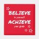 This motivational magnet has white text on a bright red background to inspire you to succeed. "BELIEVE in yourself, ACHIEVE your goals."