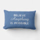 This design features a blue velvet textured background along with the text "Believe Anything Is Possible". This custom pillow makes a great inspirational gift. Available in three sizes.