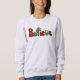 Embrace the holiday spirit with this charming sweatshirt that seamlessly weaves the word "believe" amidst the trio of cacti, where a saguaro twinkles with Christmas lights, a barrel cactus becomes a snowman, and a prickly pear proudly wears Santa hats. Wear this unique blend of belief and cactus charm to add a touch of festive whimsy to your wardrobe.