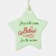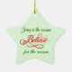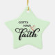 Jesus is the reason for the season Christmas Star ornament. Believe in a stylish calligraphy and gold stars. Backside printing Gotta Have Faith with a red heart.