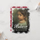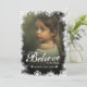 Beautiful, modern believe in the magic of christmas photo cards for the holiday season with a white snowy frame overlay with snowflakes. Features a hand lettered word „Believe” Easy to change with your own vertical photo. If You need help or matching items please contact to me!