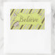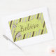 Believe Diagonal Stripes rectangle stickers features old fashioned jingle bells on a background of brown, light olive, and grey diagonal stripes with a light olive banner with brown text that reads Believe. We have matching envelopes, greeting cards, labels, and postage stamps!