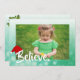 Pretty Believe sage green pine and pine cones Christmas card. Just add your family or child's photo in the personalise area.