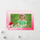 Pretty Believe red and pine cones Christmas card. Just add your family or child's photo in the personalise area.