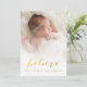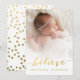 Holiday greetings to your loved ones are made easy with this versatile, simple holiday photo card with the word "Believe" written in a gold script font text overlay with a black ombre effect over your favourite family photo. Design by ELKE CLARKE© FOR MONOGRAMGALLERY. Replace sample photo with your own.