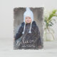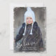 Send holiday cheer with this "Believe" in the magic of Christmas winter wonderland holiday card. Your photo is framed by a snowy border and the backside features a simple christmas tree pattern. A card that's sure to spread holiday smiles and cheer..
