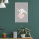 Sweet girl bunny with gold star wand and "Believe in the magic of your dreams" quote in pink modern font. Light grey background