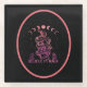 Stylish glass coaster with cool celestial Wiccan design featuring crystals, snake and moon phases on starry black night sky background, with "Believe in Magic" text